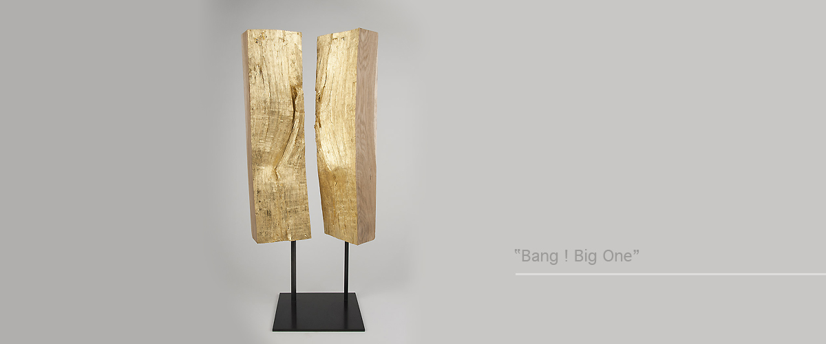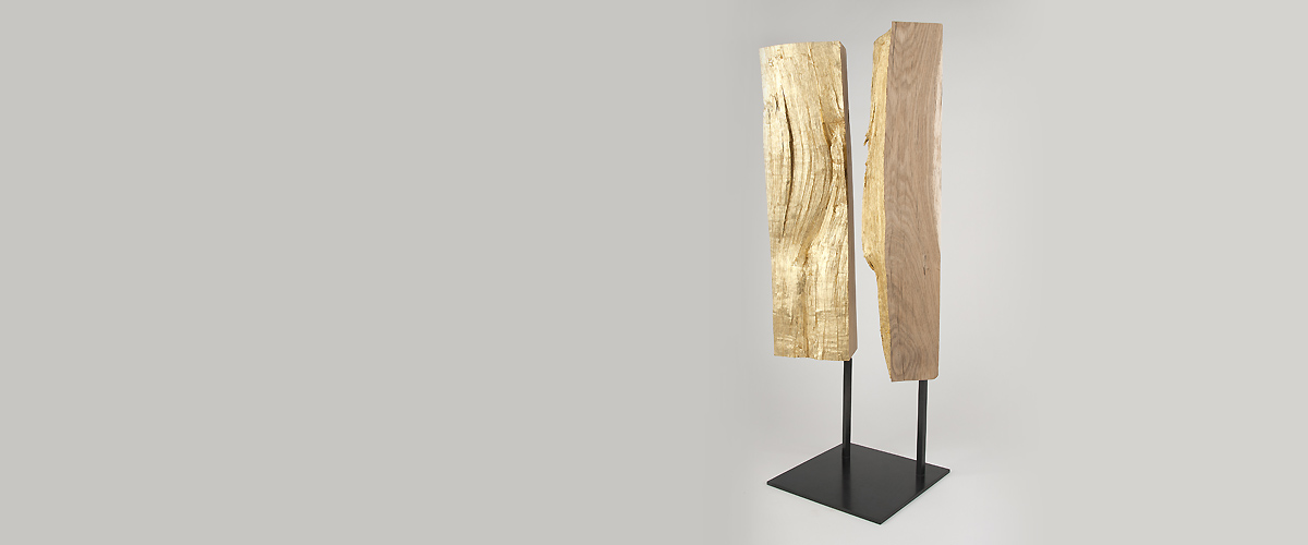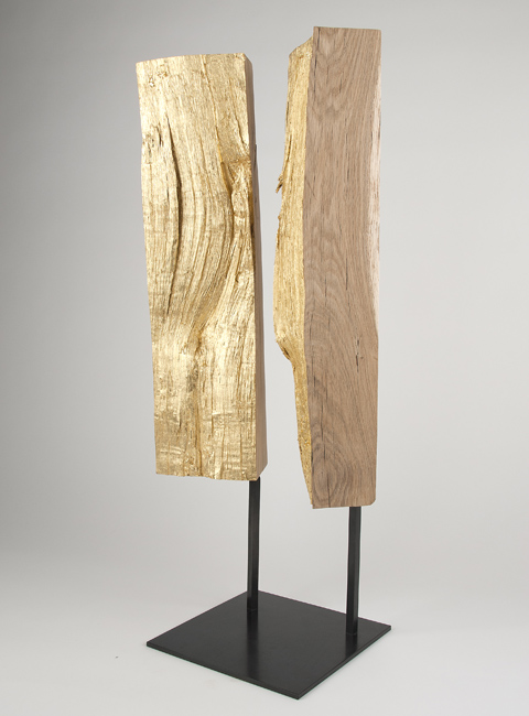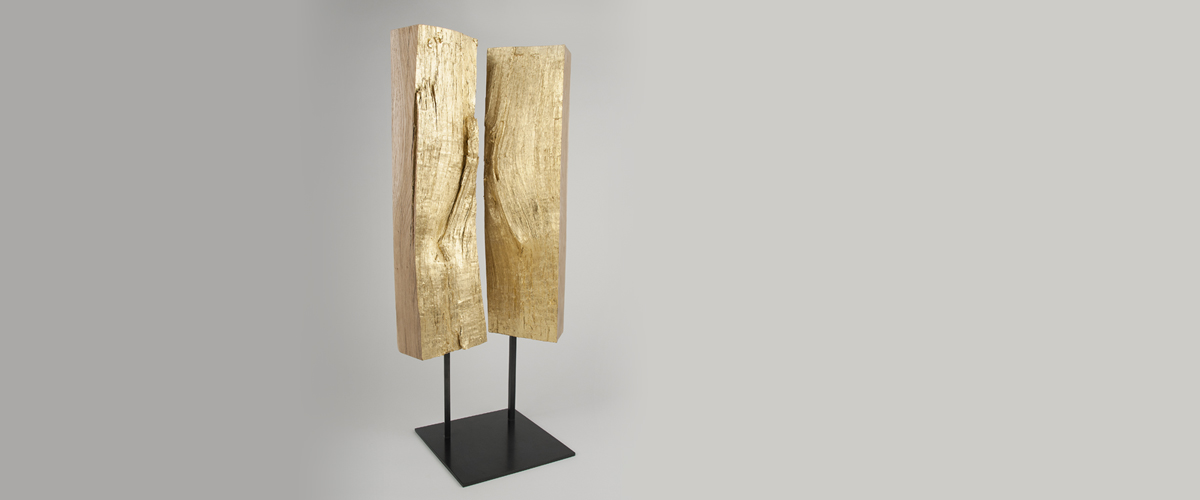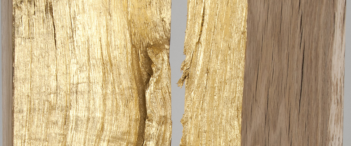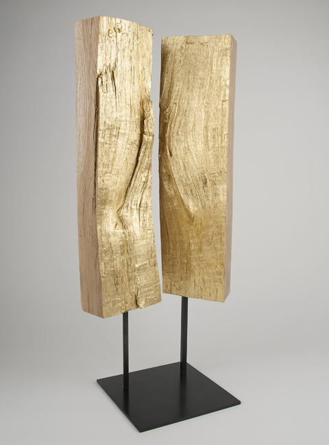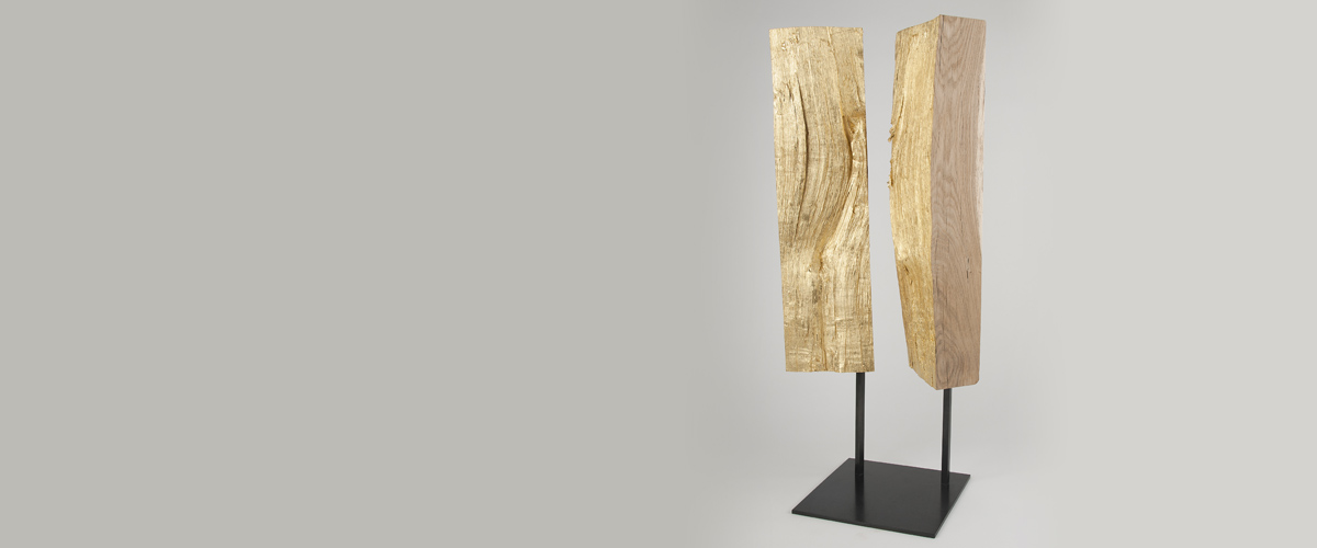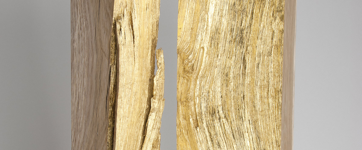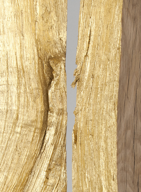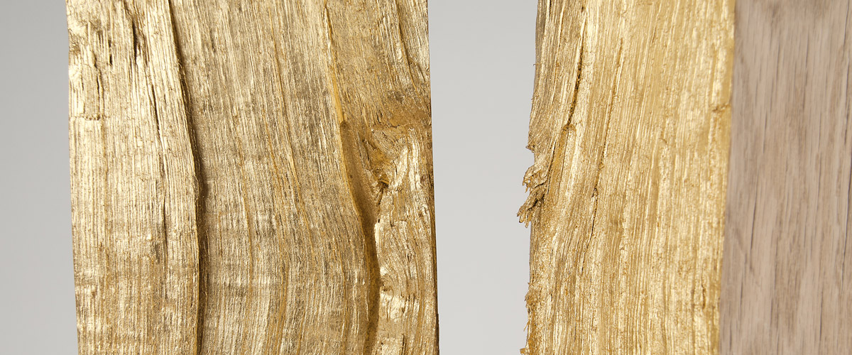 Revealing its substance, thanks to the thinness of the gold leaf, the disclosed wood with a view to a better understanding of its intimacy.