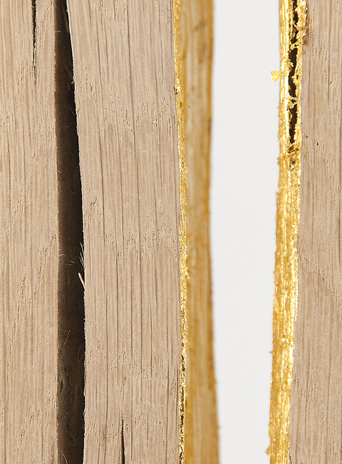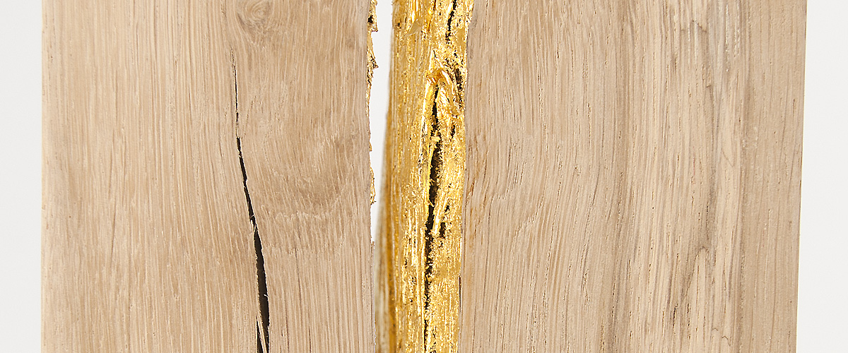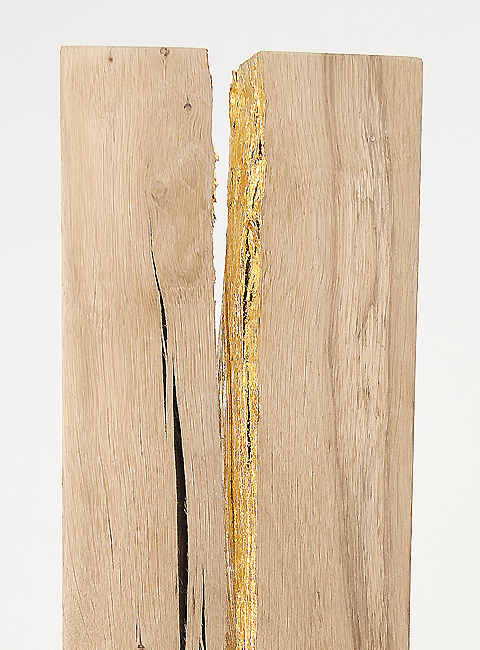 Le chêne, ici ouvert par l’énergie de la hache, laisse percevoir une fine percée d’un entre-deux, comme un flirt avec l’infini.