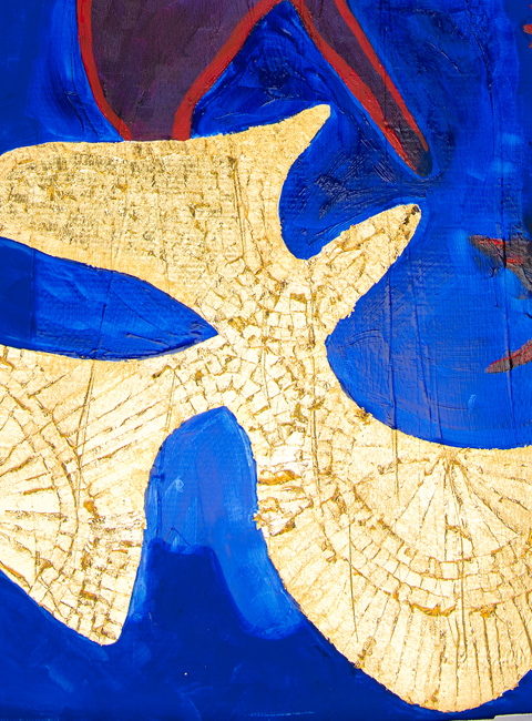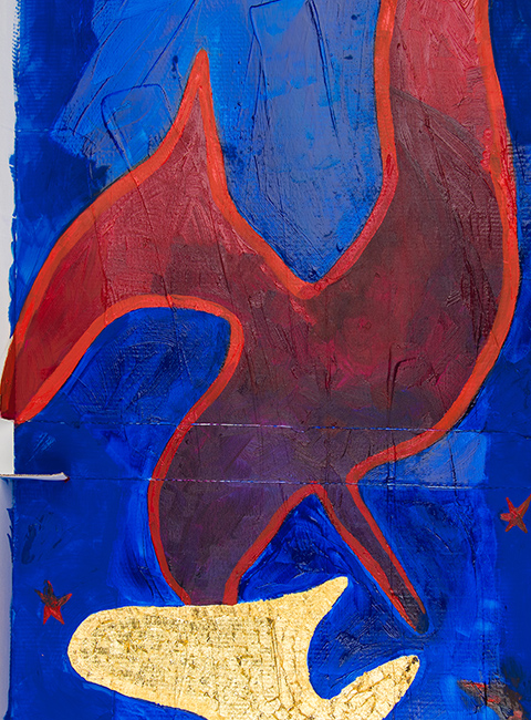 Le deuxième oiseau, ombre portée indépendante de l’oiseau doré s’étire comme une flamme représentée en contre-jour.