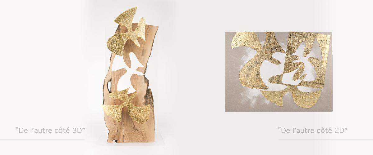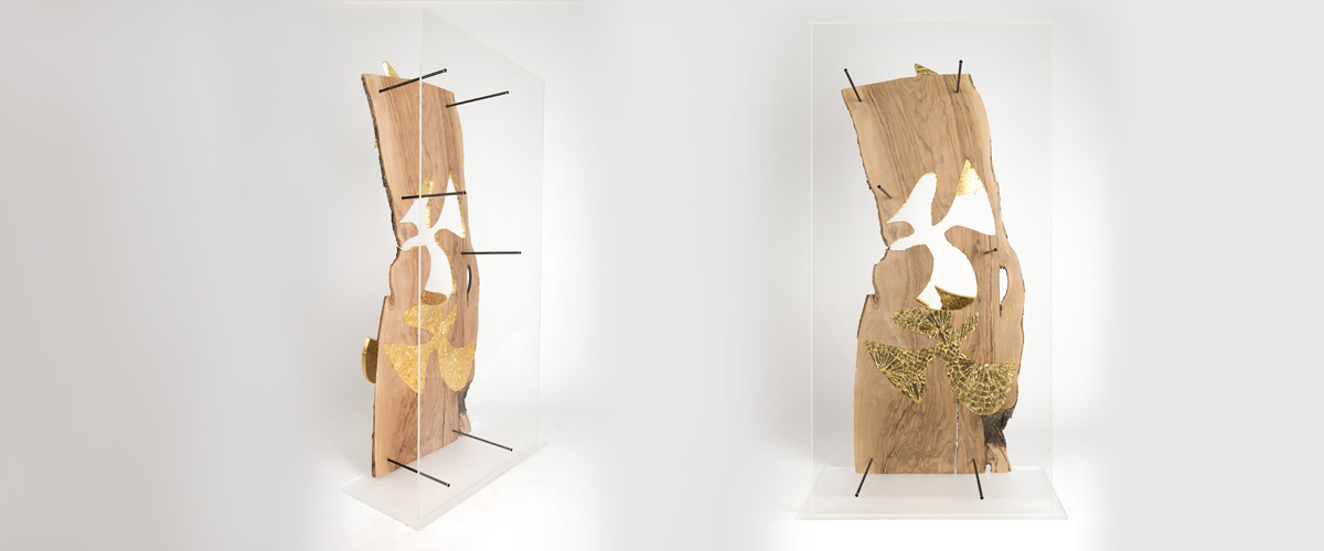 Créées par un vide, représentées en deux ou bien en trois dimensions, ces différentes représentations complices s’unissent sur la planche de bois d’olivier pour exprimer les multiples degrés d’une réalité fuyante.