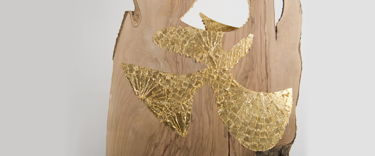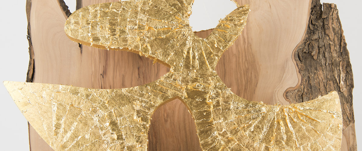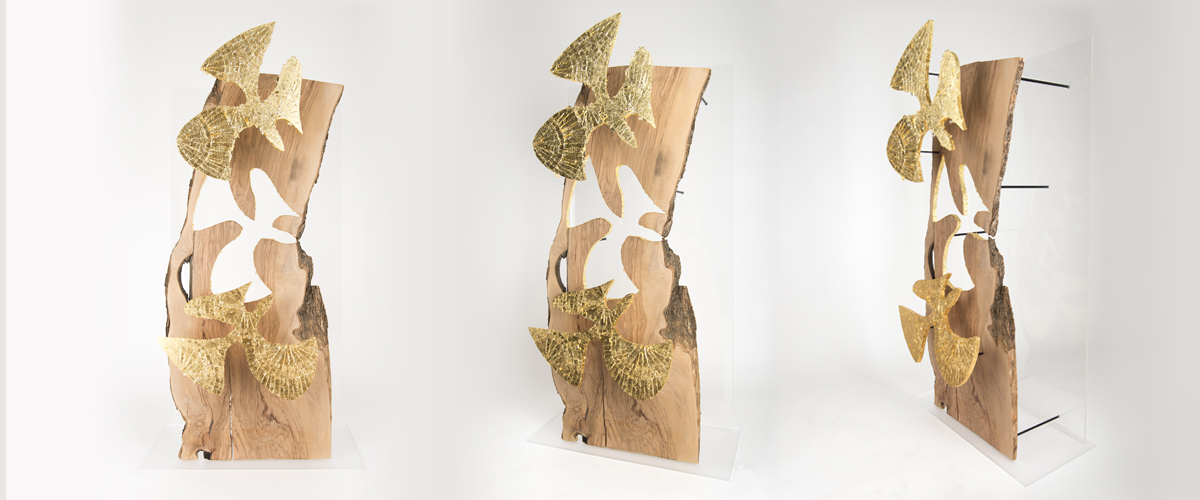 Avec la précision du laser, le bois d’olivier, symbole de paix, est découpé dans sa matière pour révéler l’oiseau colombe qu’il contient.