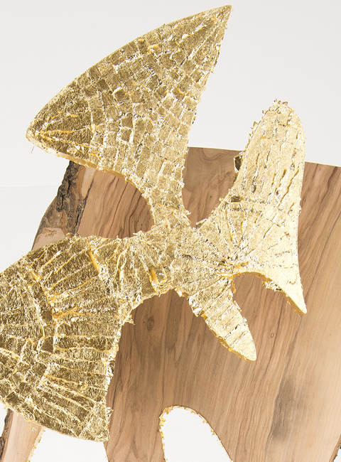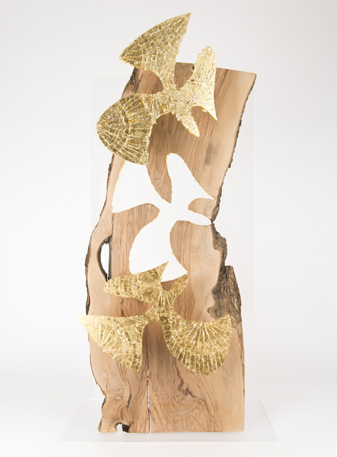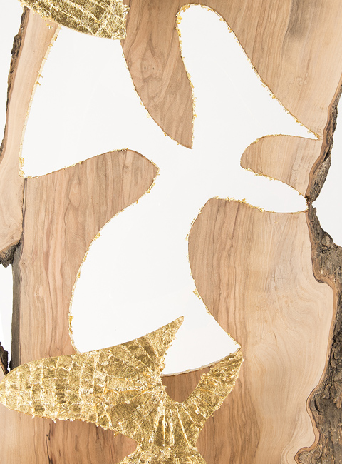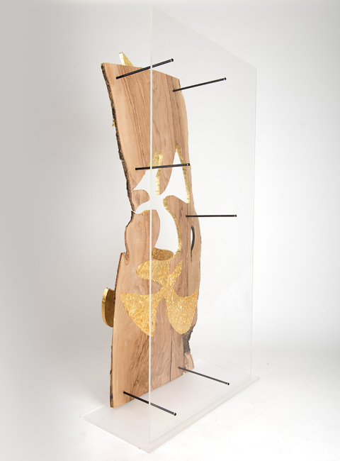 Bois d’olivier de 800 ans d’âge de la région de Calabre (Italie) et feuille d’or (22 carats et 27.75 carats)