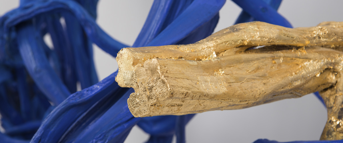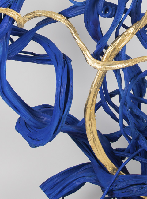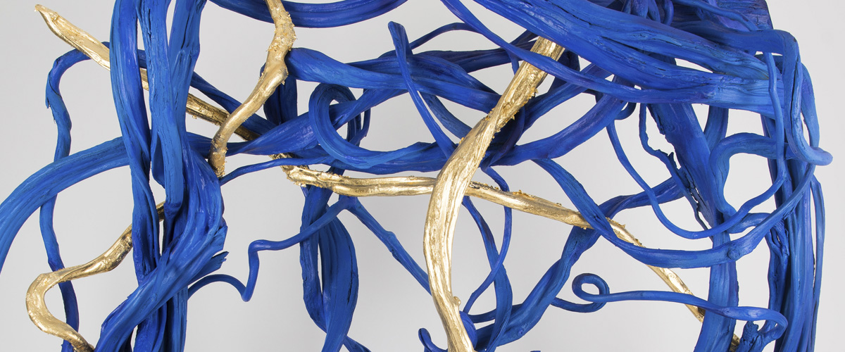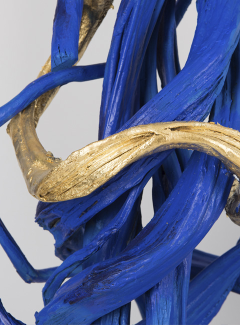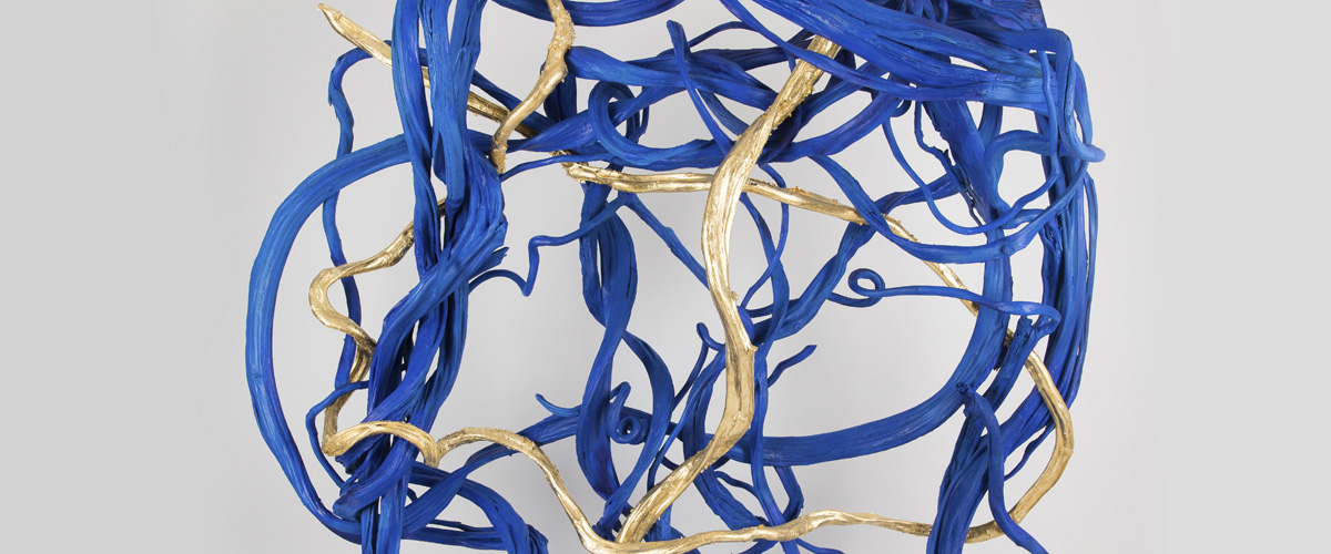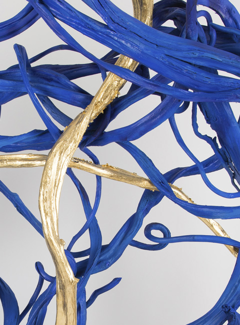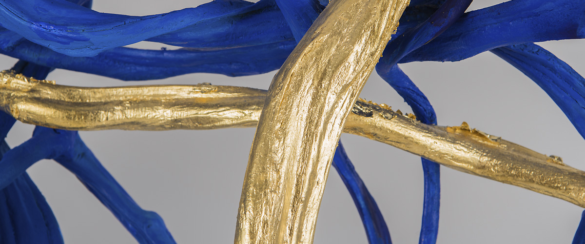 Lianas, much like thoughts complexity, intertwine and lose and are articulated around the main liana, gilt with gold leaf, looking like having a victorious and unifier pathway.