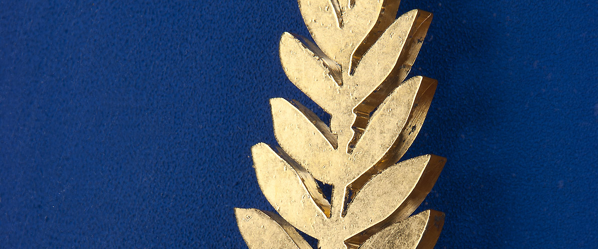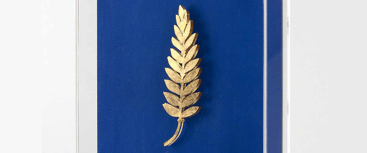 Rameau d’olivier en or, dont le dessin est reproduit à l’identique, déposé sur la lune par Neil Armstrong lors de l’expédition Apollo 11 en 1969.