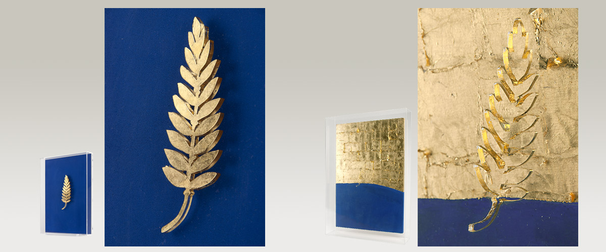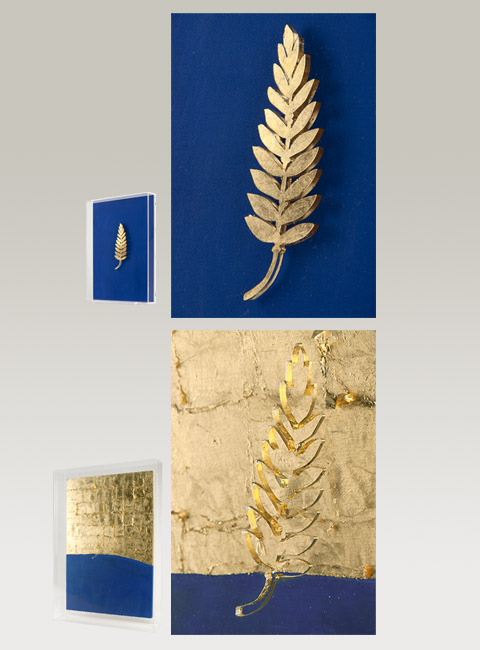 Gouache and golden leaf on plexiglas.