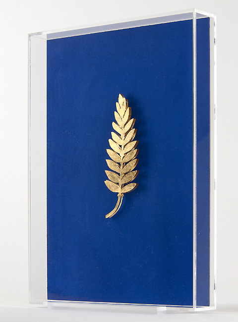 Actual size golden olive branch as the one dropped by Neil Armstrong on the moon during Apollo 11 mission in 1969.