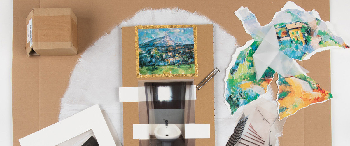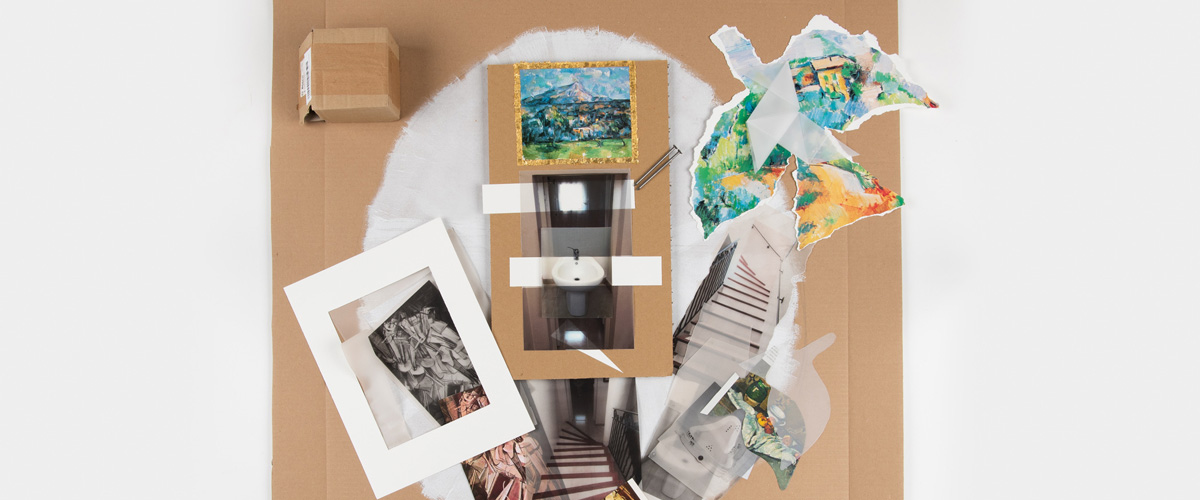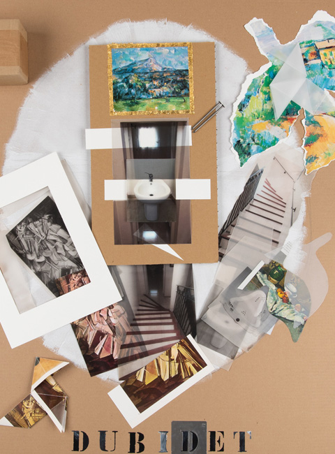 The first one stands for a space in the artist’s family house in Aix-en-Provence, made up of a stairway going down to the shower room, of a window opening to the Sainte-Victoire as Paul Cézanne painted it and a bidet right beneath this window.