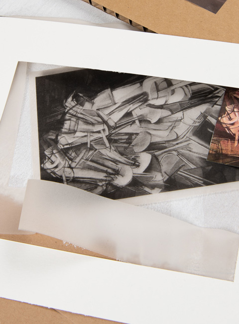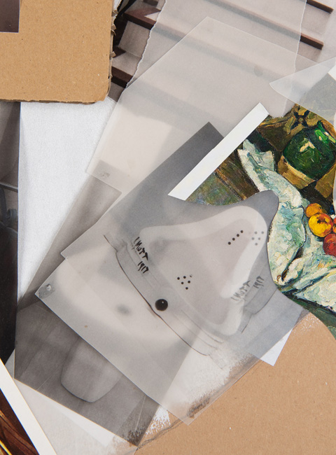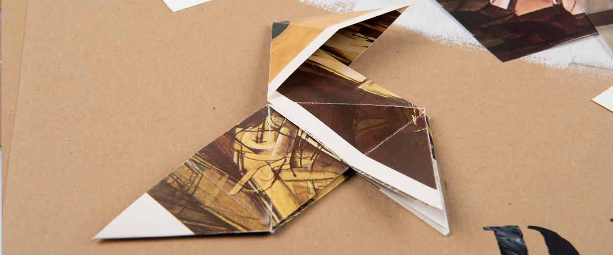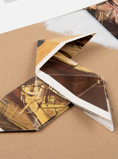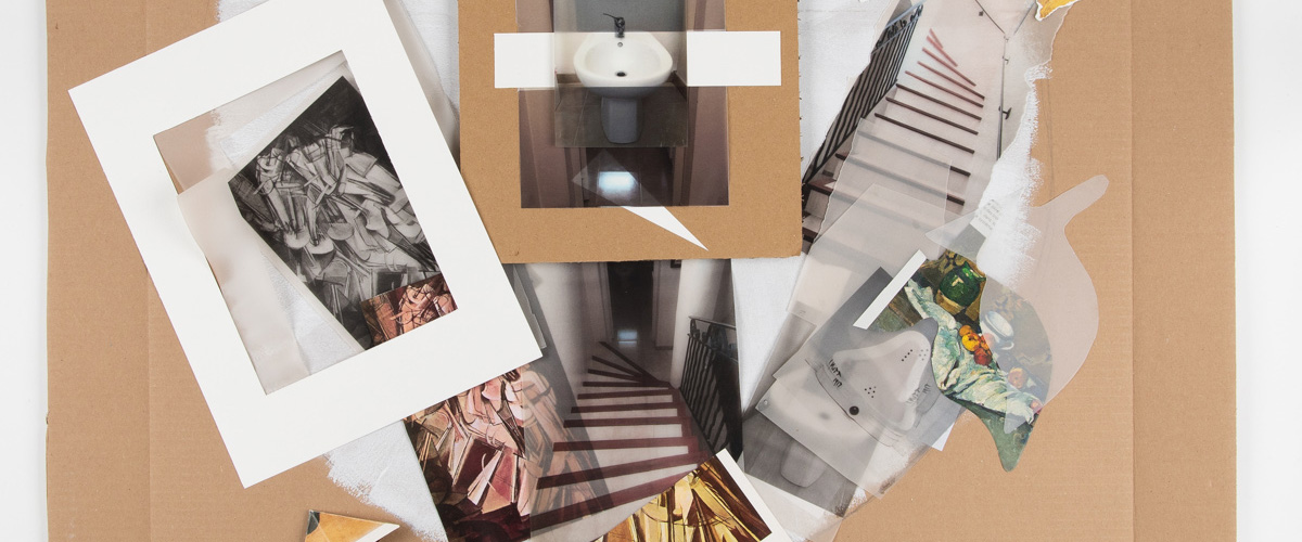Dans cette réalisation assemblant collages, readymade, photos, pliages et gouaches, deux descriptions entrent en résonnance.