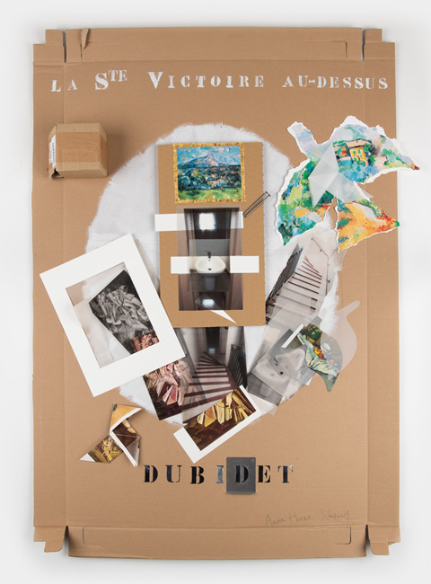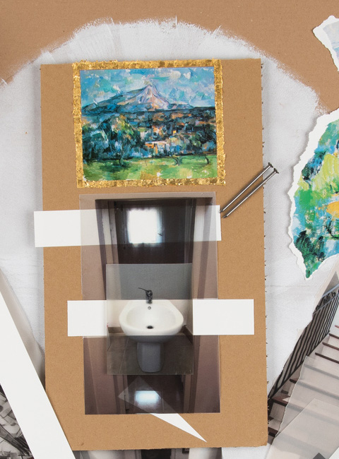 La première est celle d’un espace dans la maison familiale de l’artiste à Aix-en-Provence, se composant d’un escalier descendant vers la salle d’eau, d’une fenêtre ouvrant sur la montagne Sainte-Victoire telle que la peignait Paul Cézanne et d’un bidet à l’aplomb de cette fenêtre.