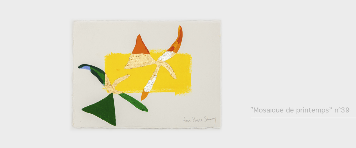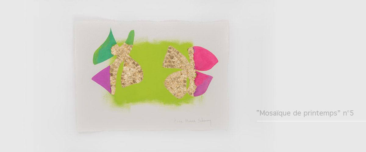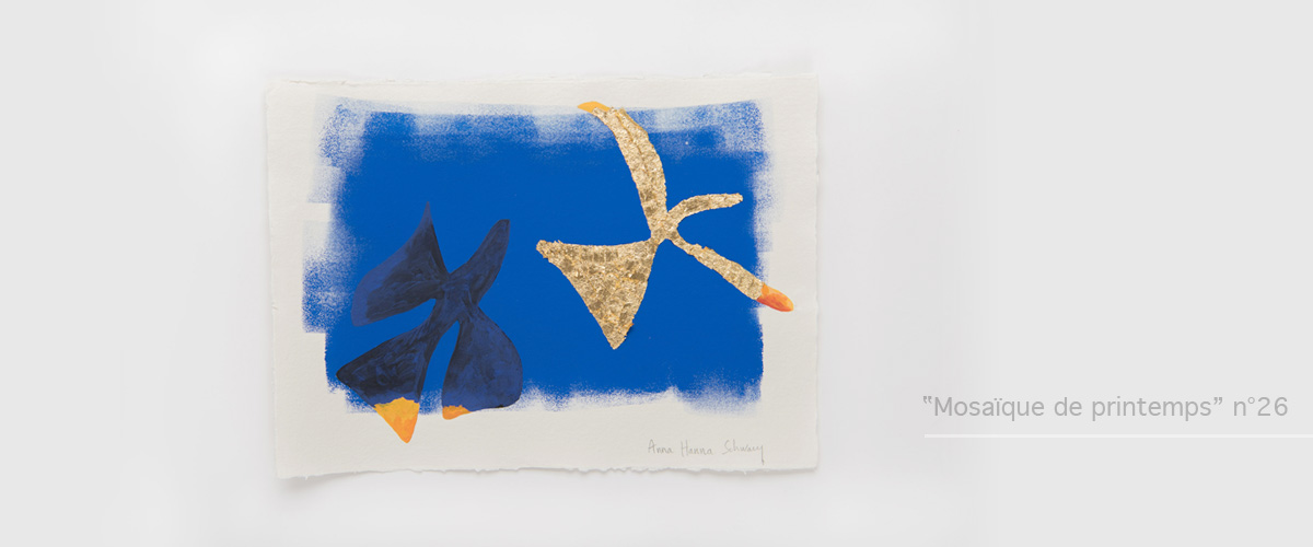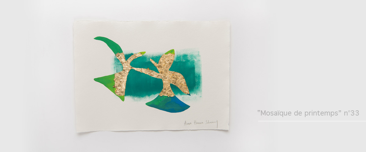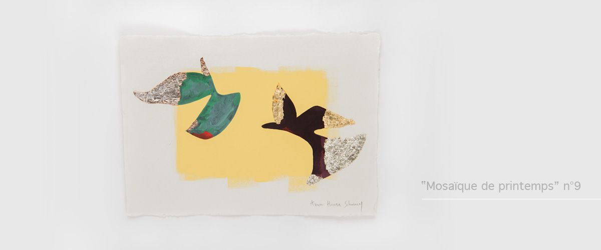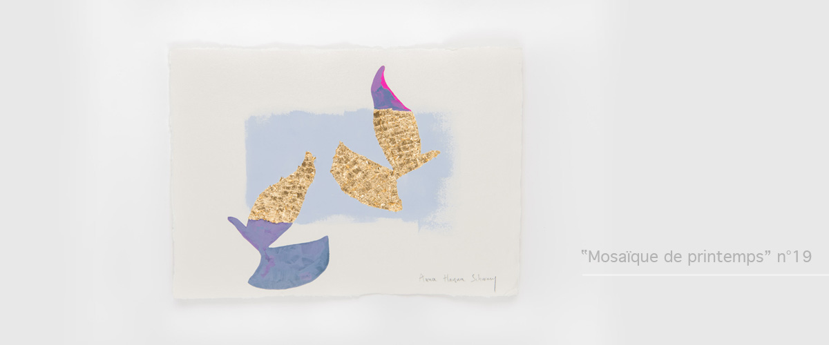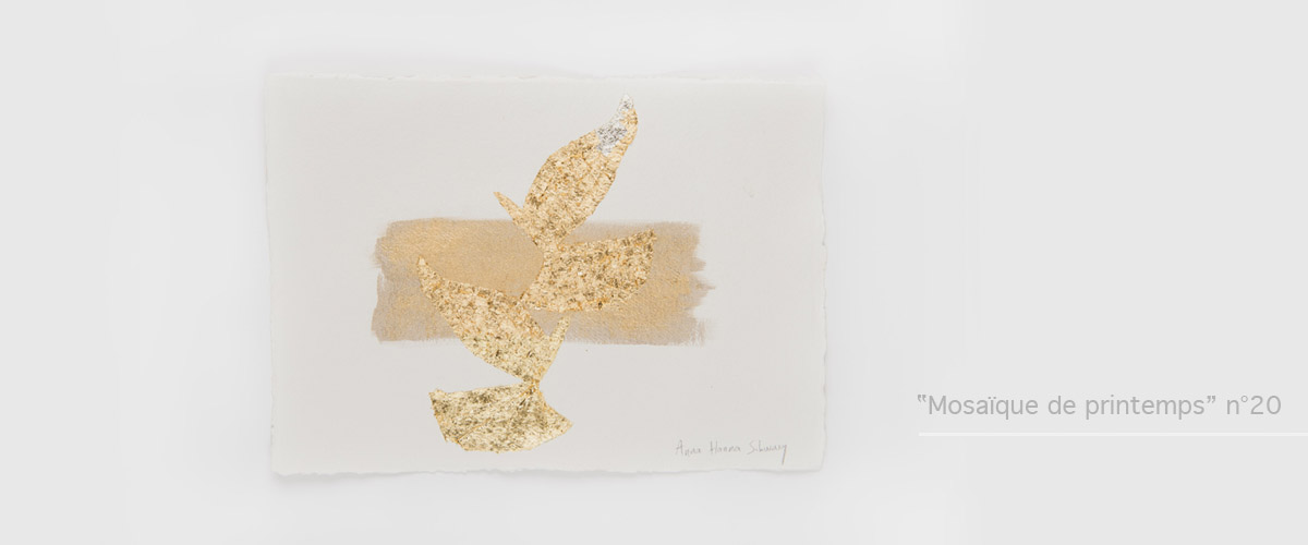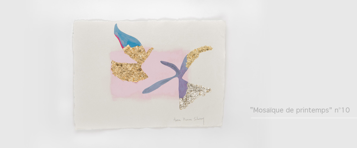 Les oiseaux représentés en mosaïque de feuille d’or ou en couleurs sont semblables à l’abondante explosion florale, joyeuse et parfumée du mois de mai.