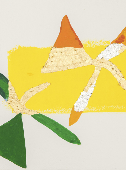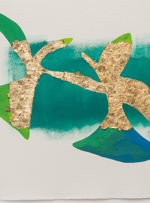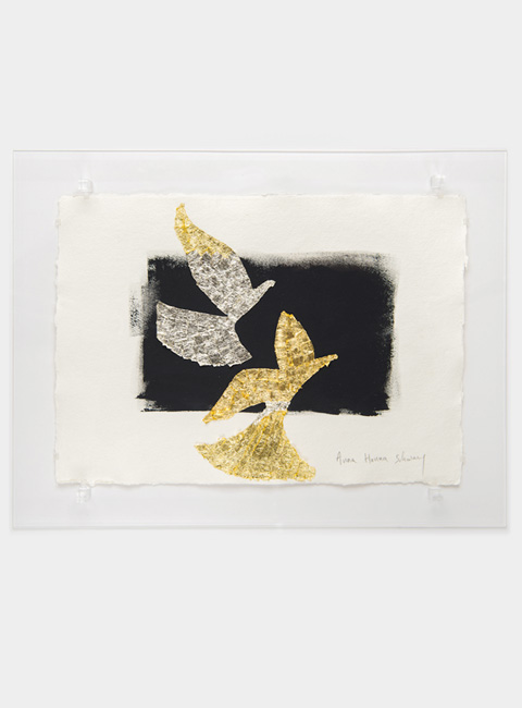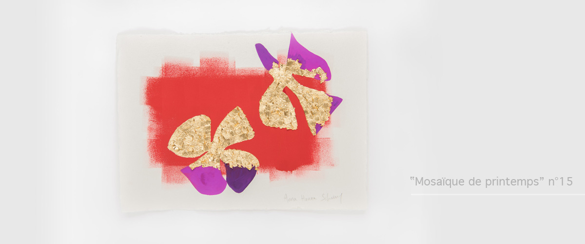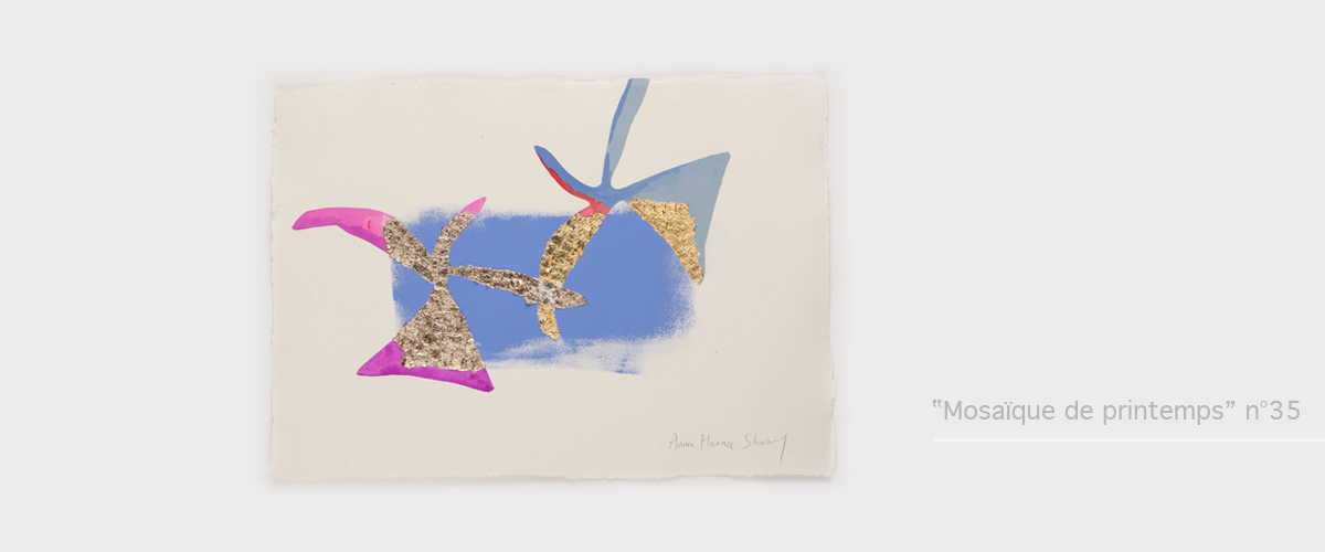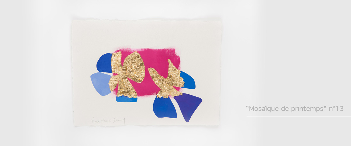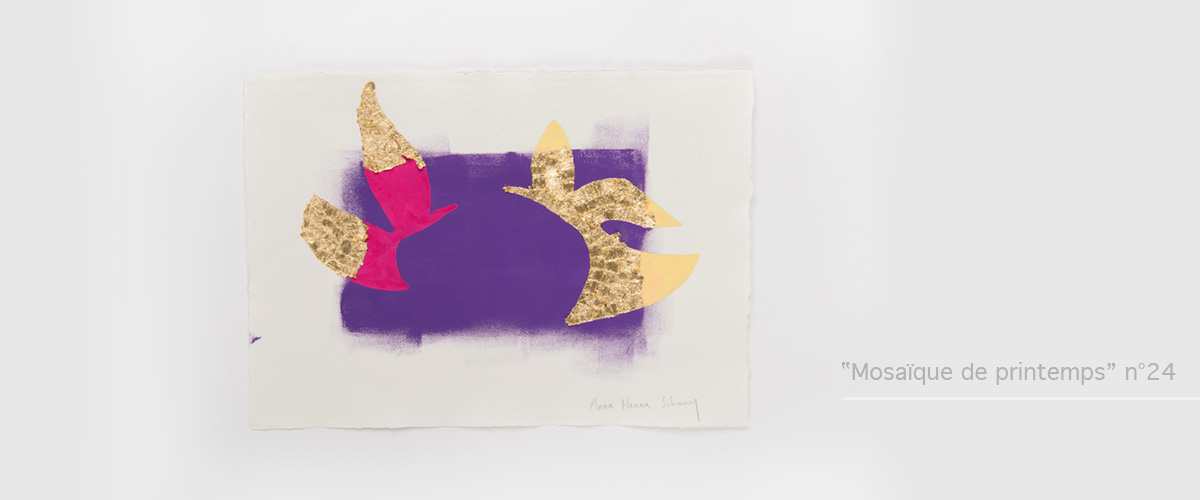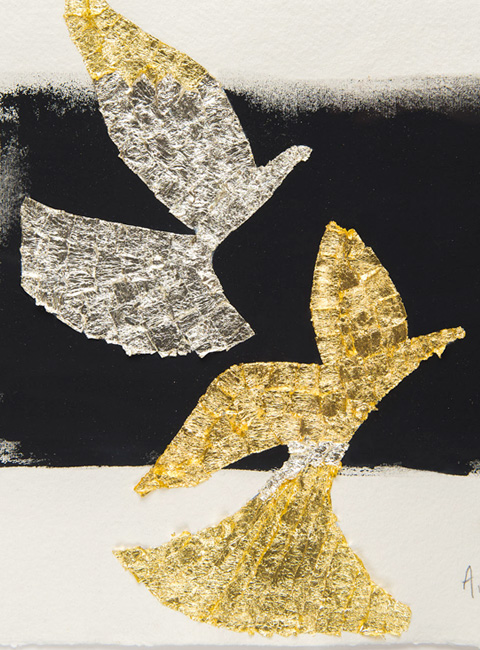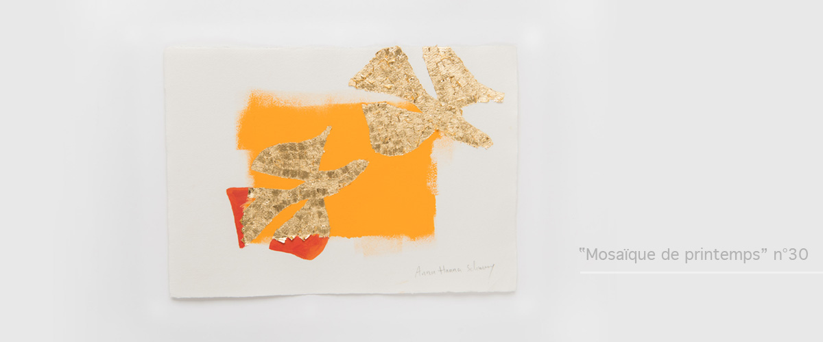 Les oiseaux représentés en mosaïque de feuille d’or ou en couleurs sont semblables à l’abondante explosion florale, joyeuse et parfumée du mois de mai.