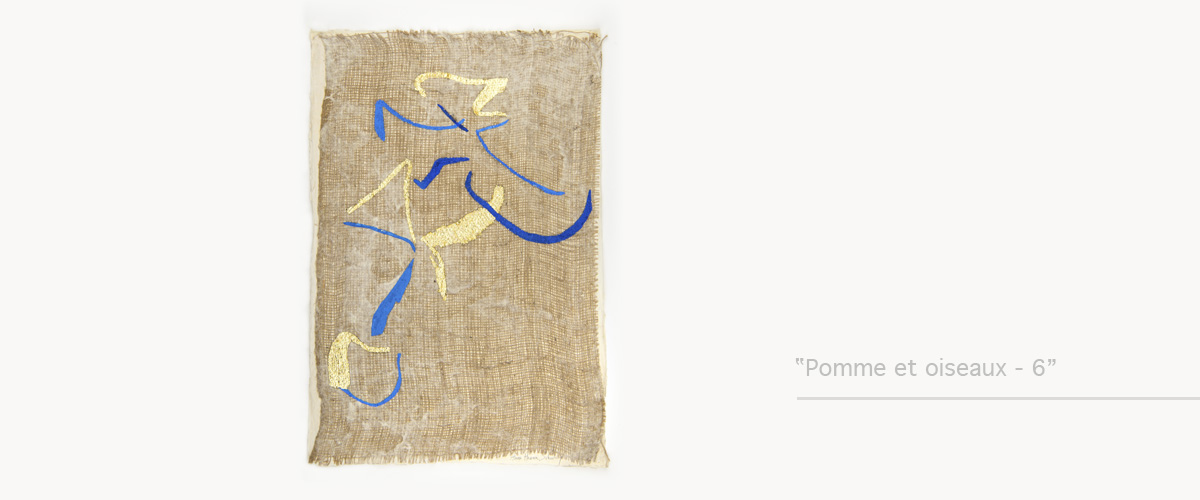 «Pomme et Oiseaux » is the depiction of a shift between the fruit, product from tree’s creation, rooted in the ground and the bird, linking it to the sky.