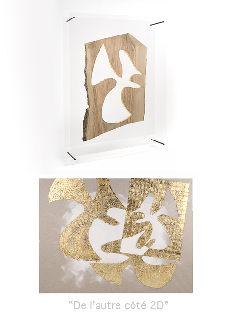 Dans l’œuvre « The Window », la planche d’olivier, comme un pochoir, devient une trouée vers un au-delà sans fond. Une fenêtre vers l’infini.