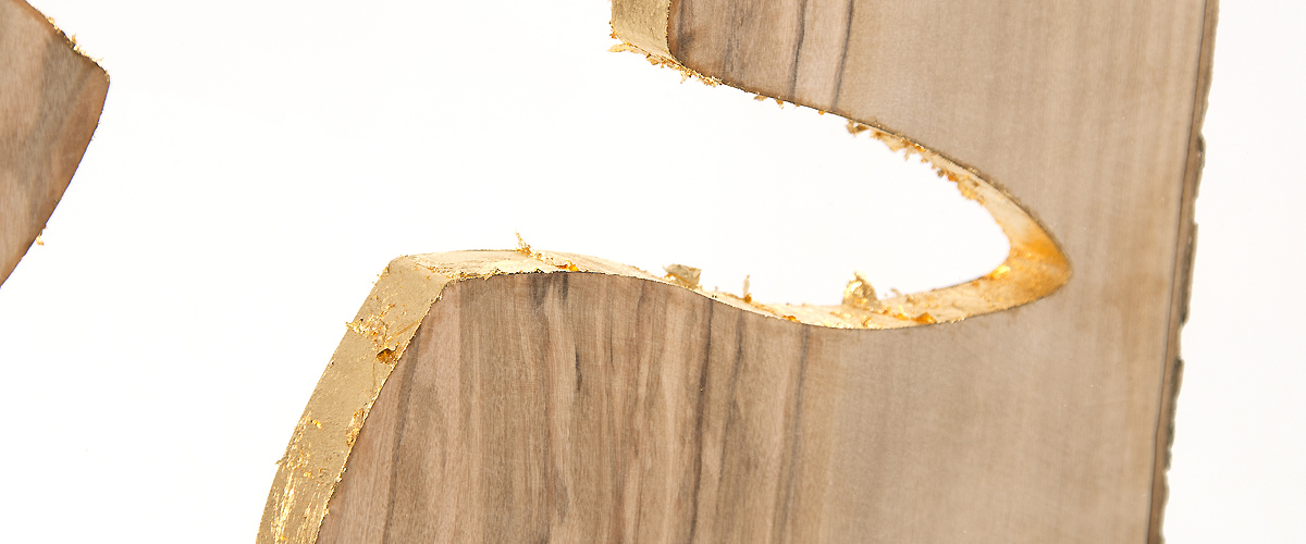 The olive wood, by laser burning, reveals the dove bird hidden inside.