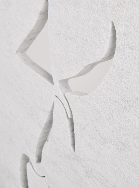 L’intérieur a été évidé par un découpage au jet d’eau d’une puissance de 5000 bars afin de trancher le marbre avec une très grande précision.