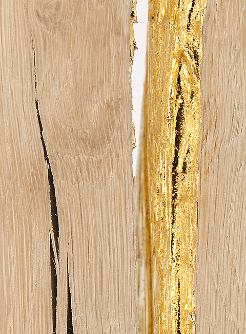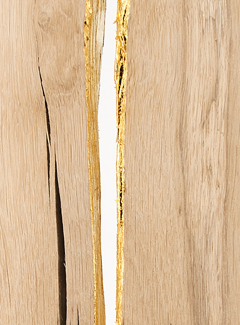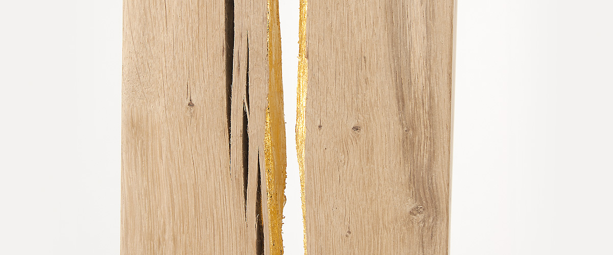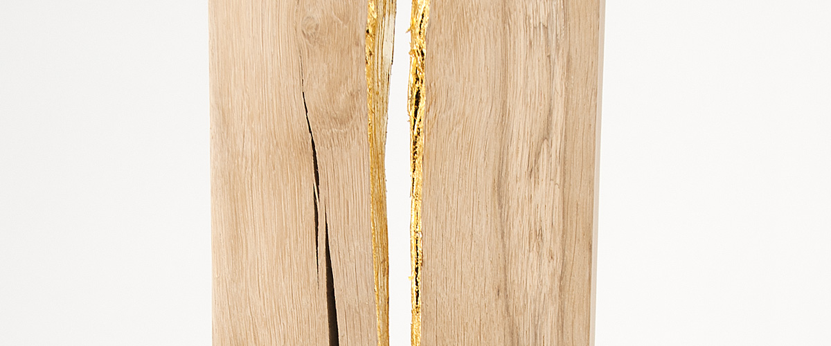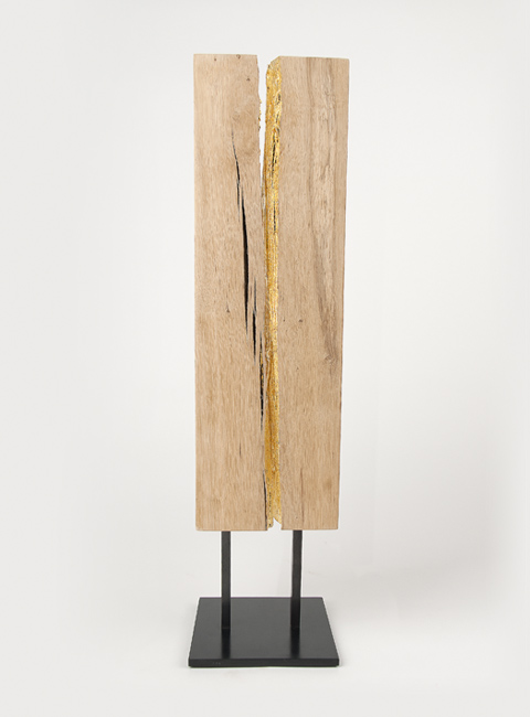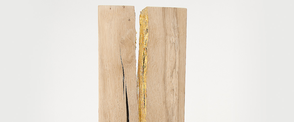 Le chêne, ici ouvert par l’énergie de la hache, laisse percevoir une fine percée d’un entre-deux, comme un flirt avec l’infini.