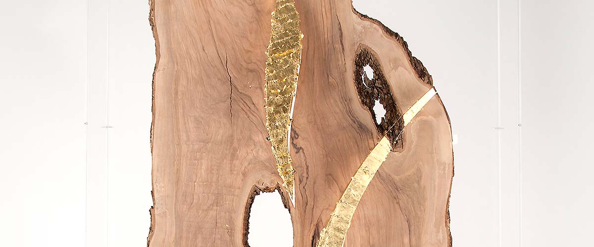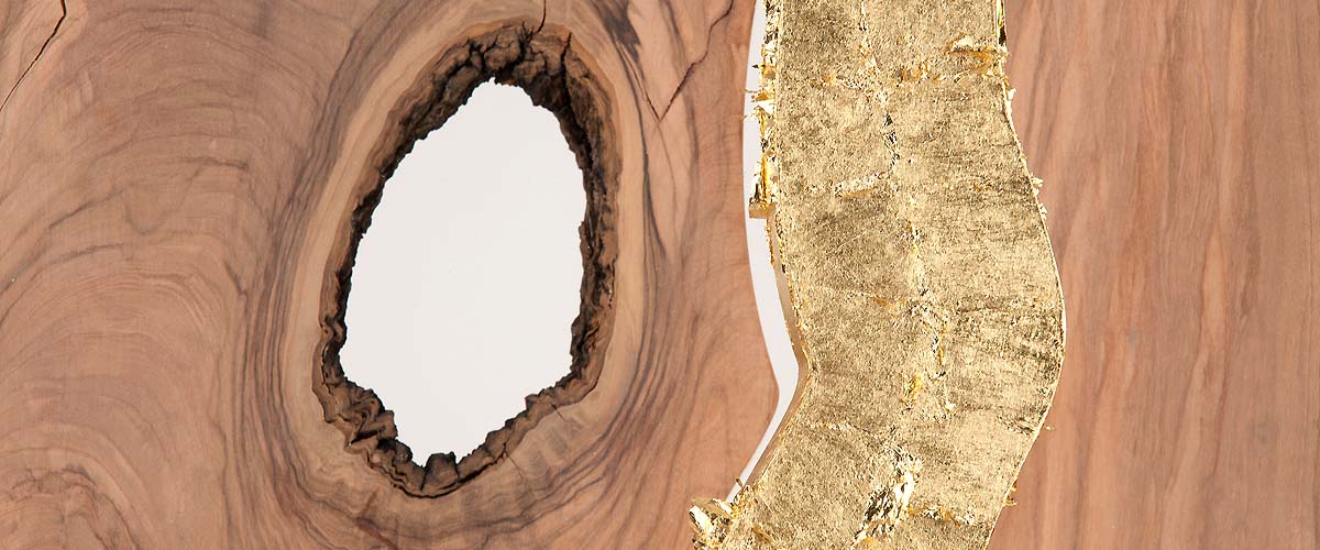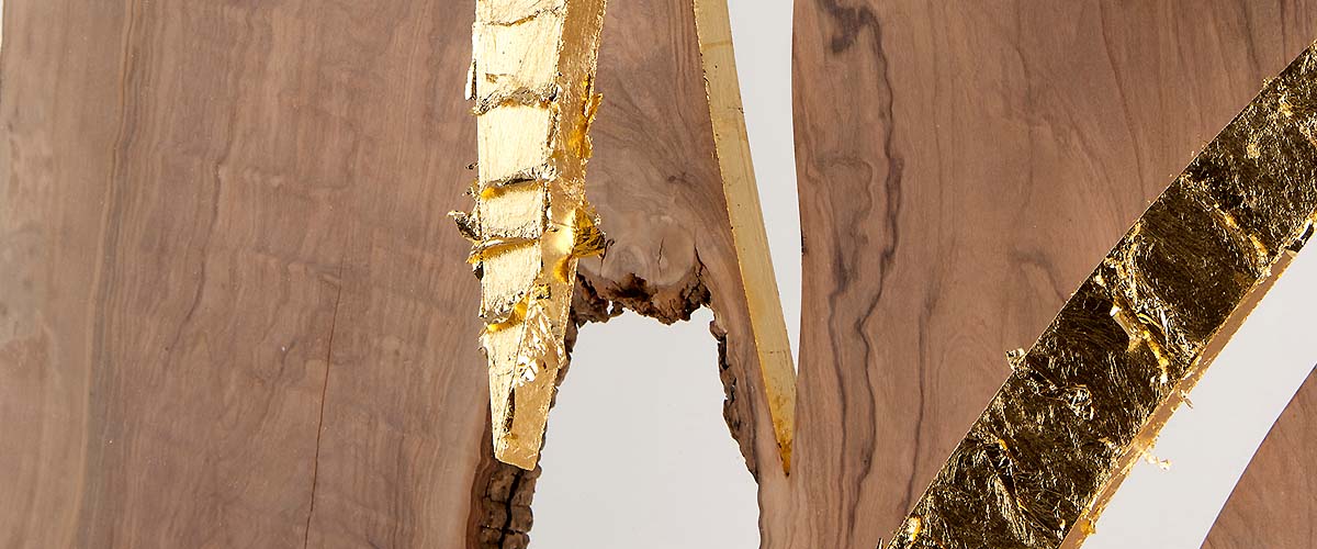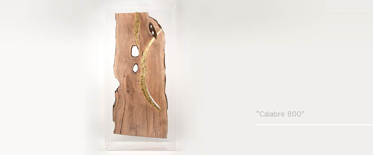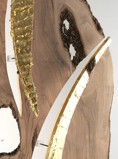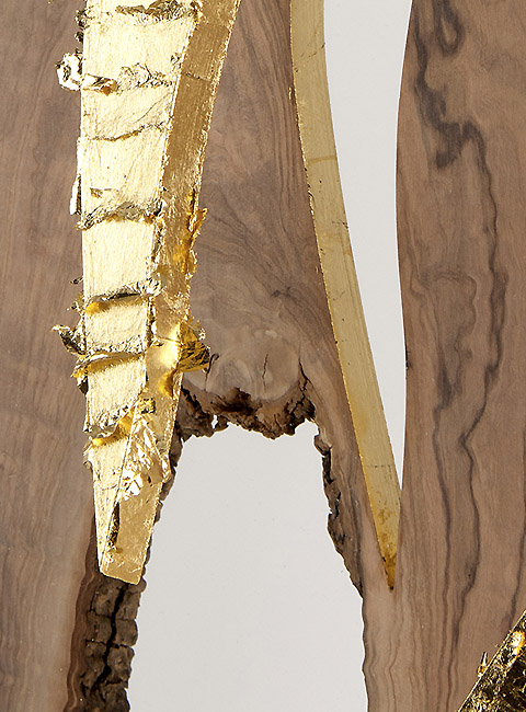 800 years aged olive wood from Reggio de Calabre (Italy) and golden leaf (22 Carats).