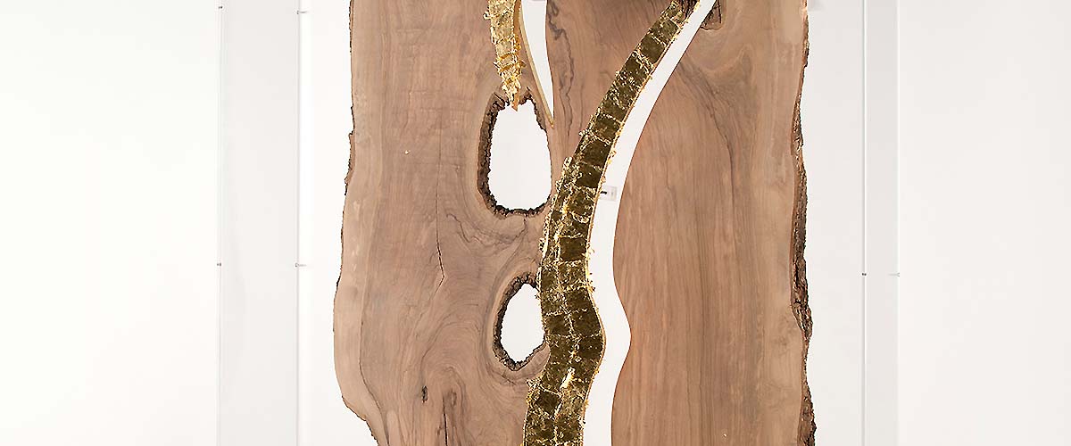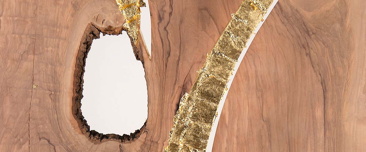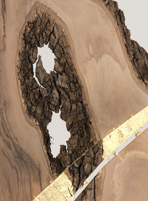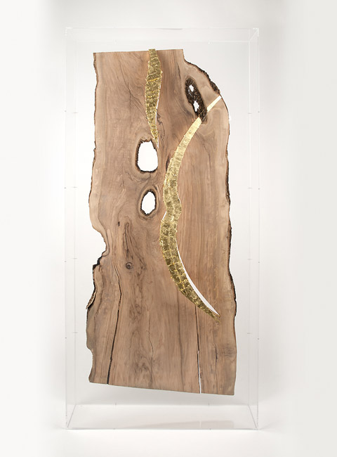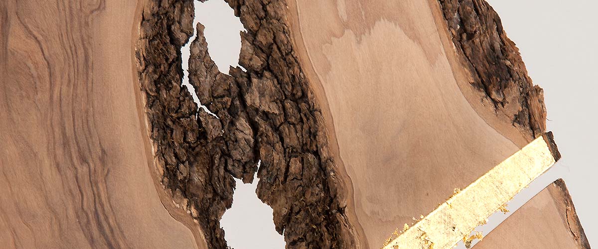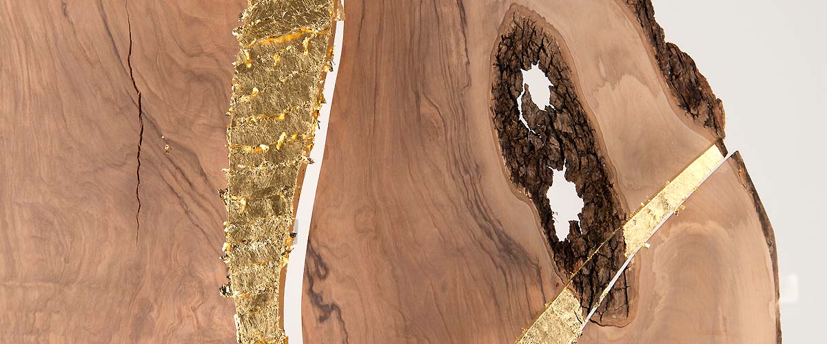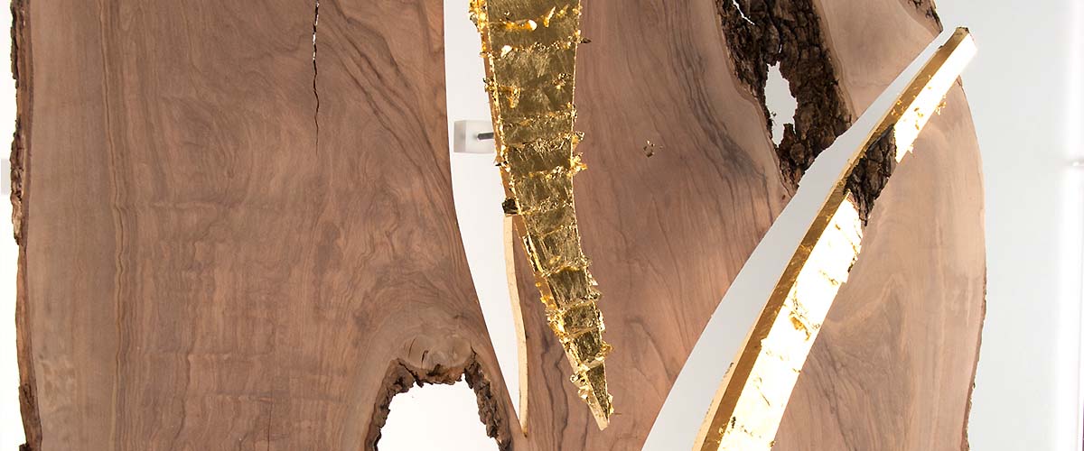 800 years aged olive wood from Reggio de Calabre (Italy) and golden leaf (22 Carats).