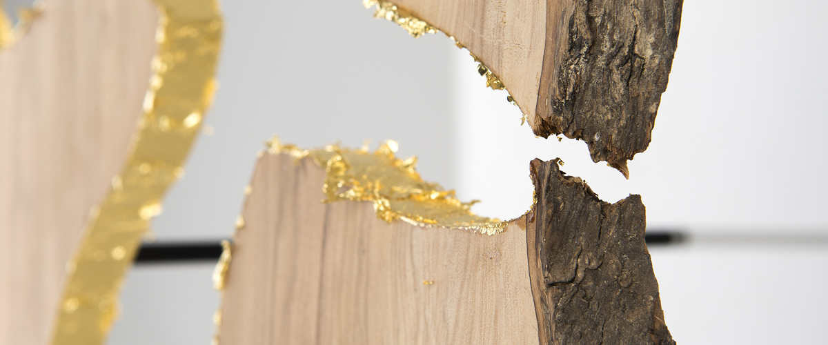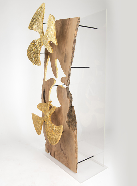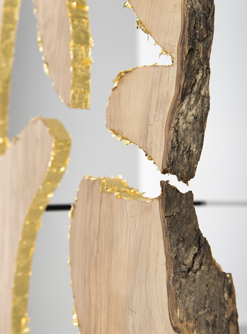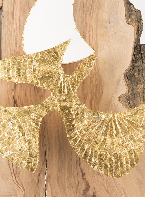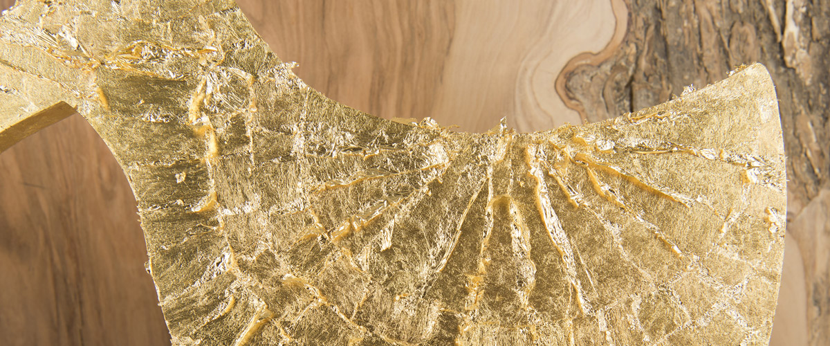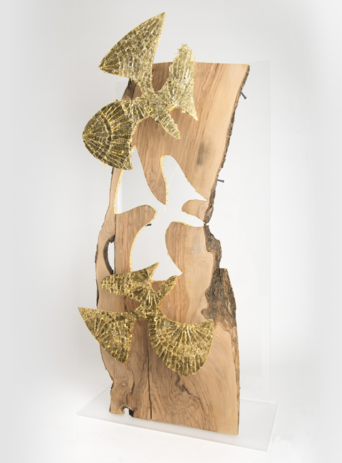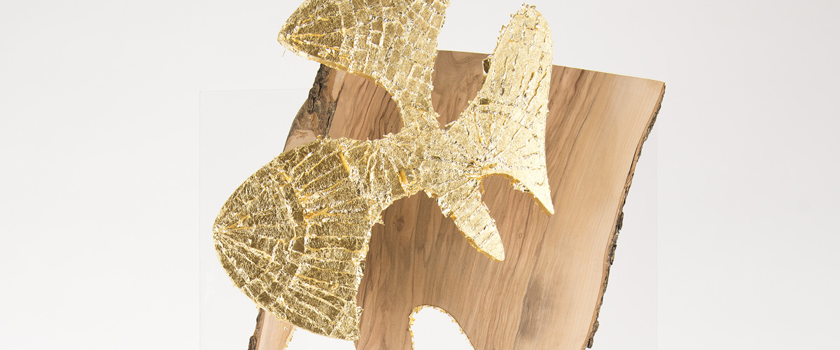 Bois d’olivier de 800 ans d’âge de la région de Calabre (Italie) et feuille d’or (22 carats et 27.75 carats)