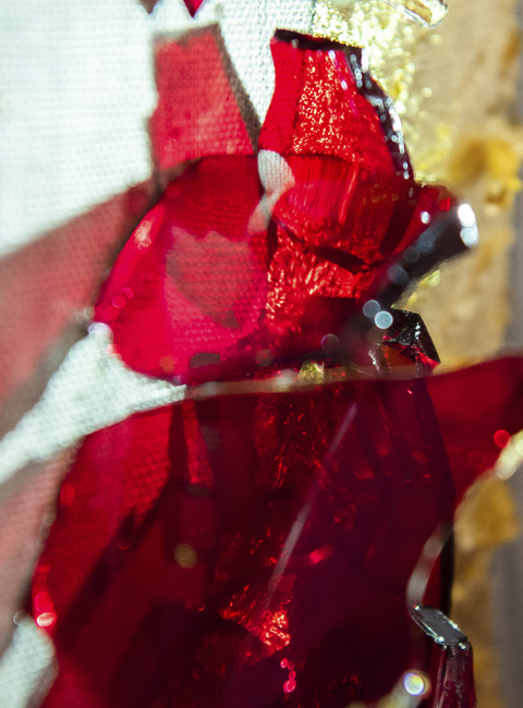 Linen canvas, pigment, red bottles, golden leaf (22 Carats)