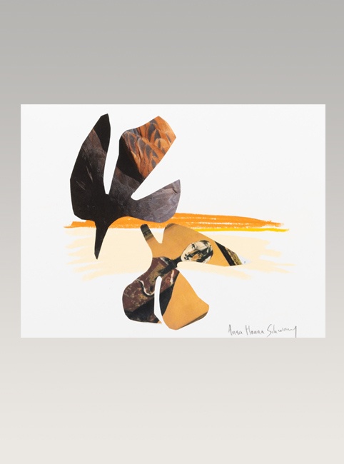 Paper cut-outs, grease and dry crayon, collage