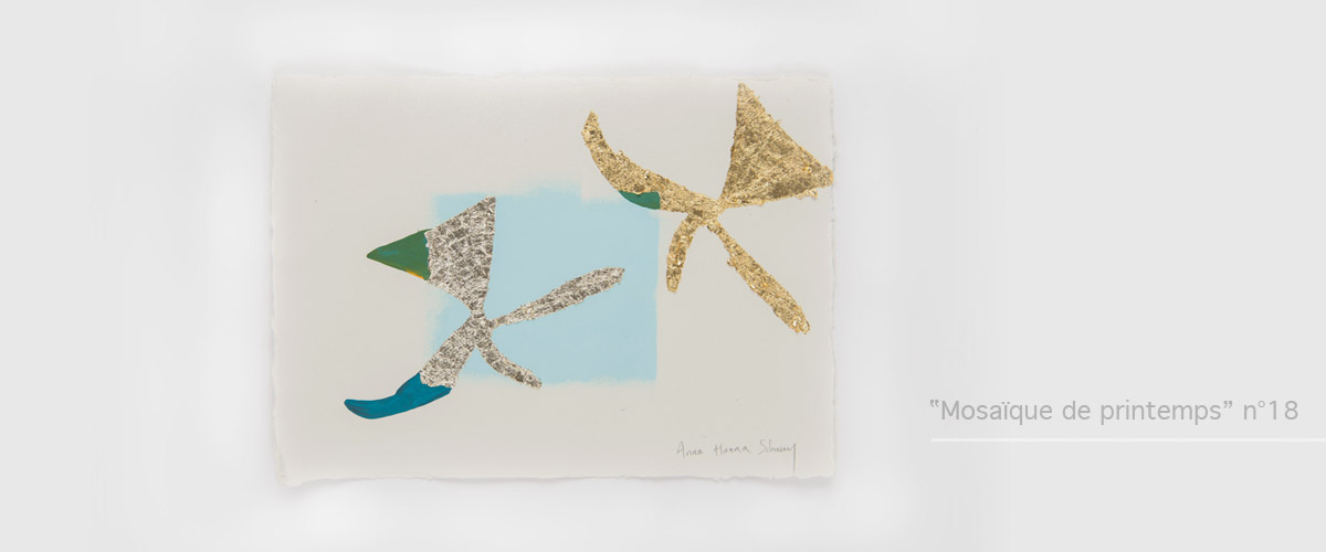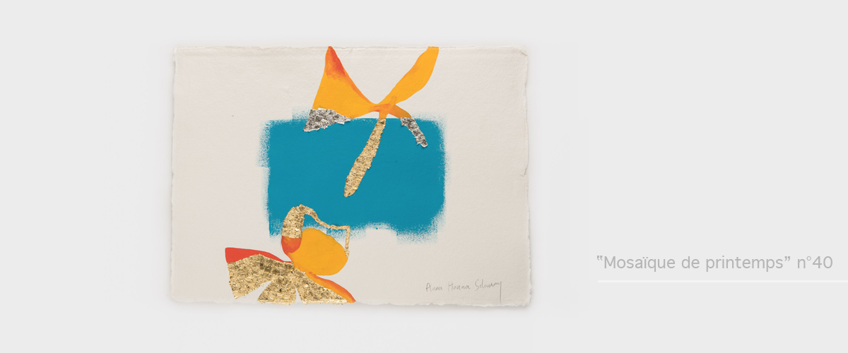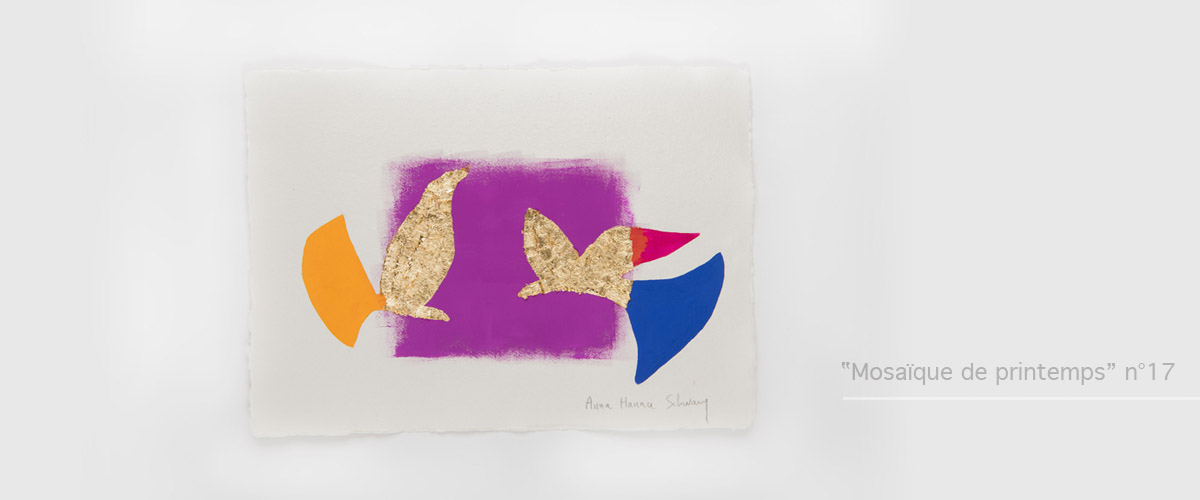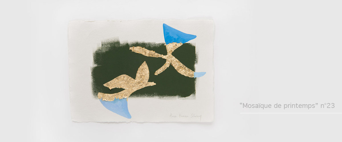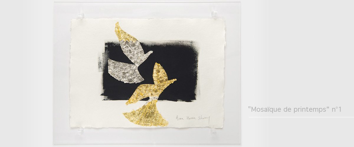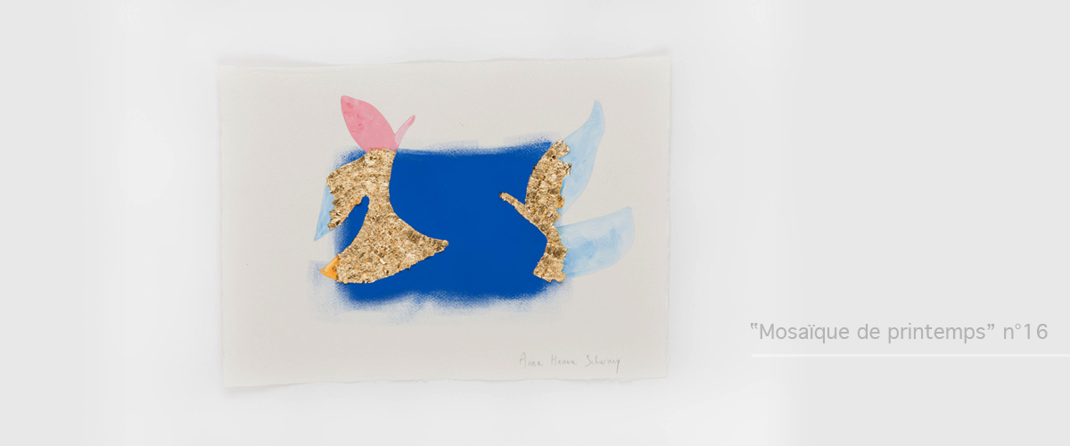 Les oiseaux représentés en mosaïque de feuille d’or ou en couleurs sont semblables à l’abondante explosion florale, joyeuse et parfumée du mois de mai.