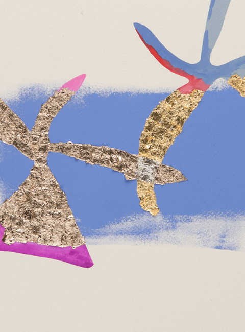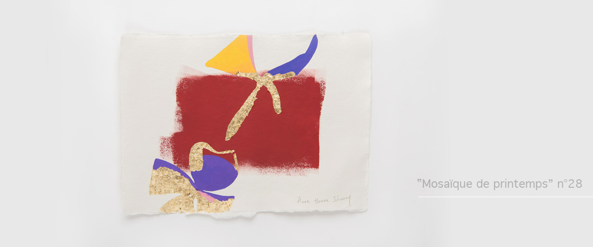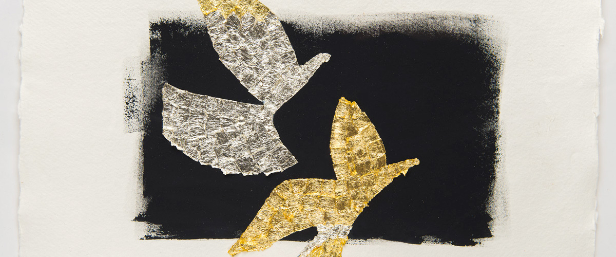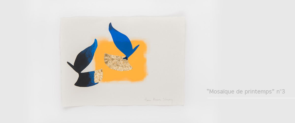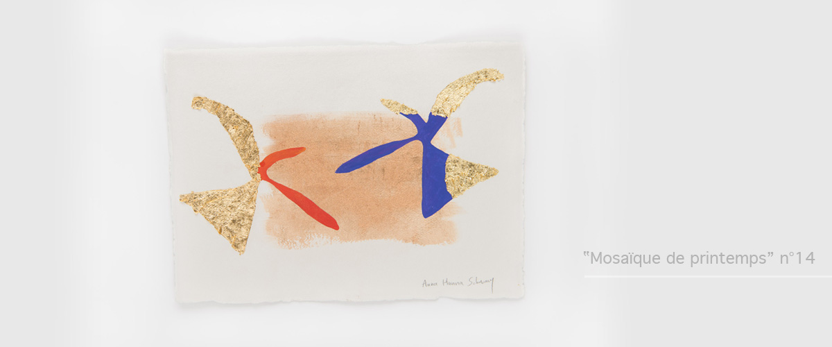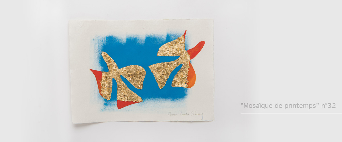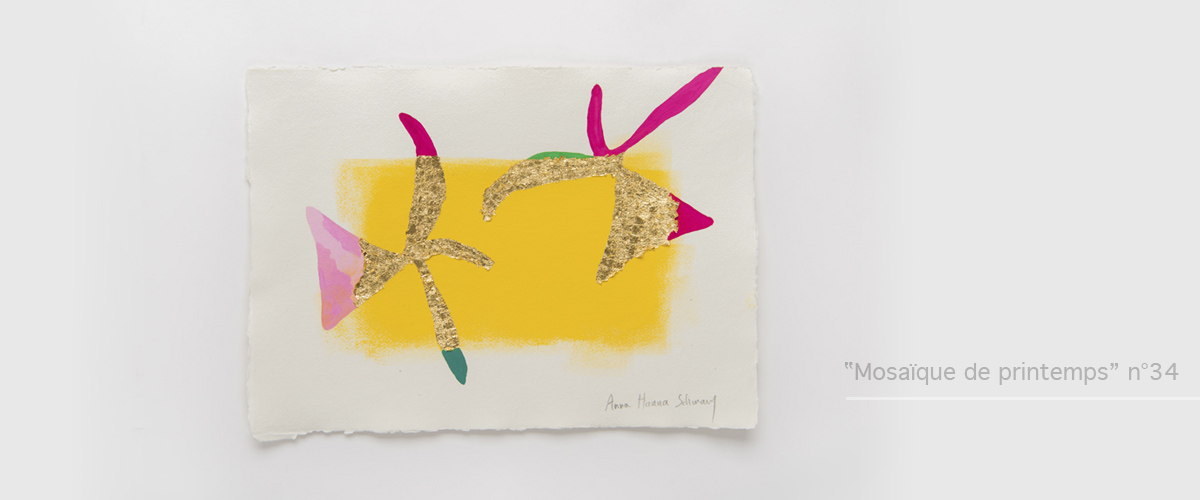 Les oiseaux représentés en mosaïque de feuille d’or ou en couleurs sont semblables à l’abondante explosion florale, joyeuse et parfumée du mois de mai.