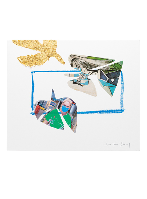 Papiers découpés, craie grasse, feuille d’or sur toile de coton