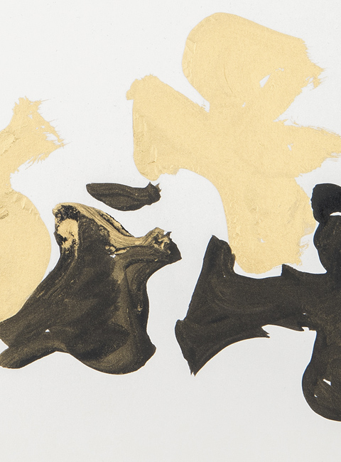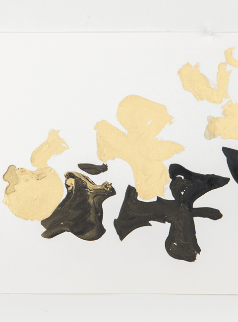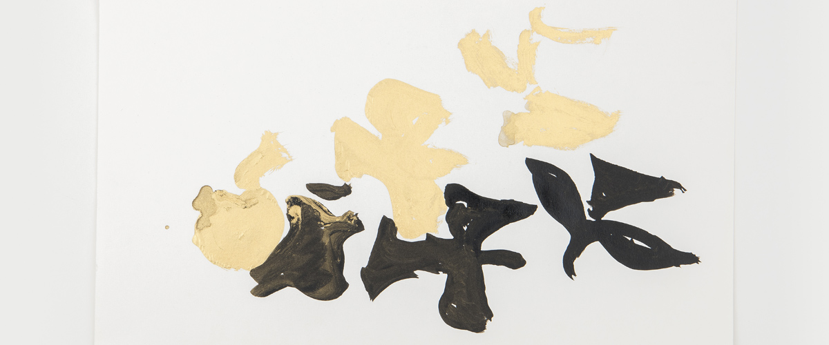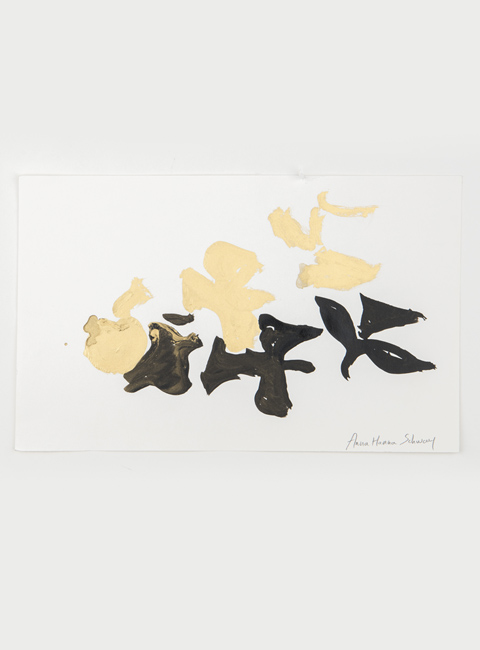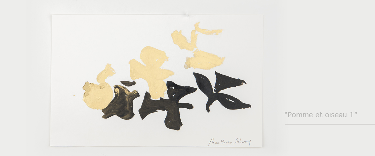 Cette encre sur papier est un glissement entre le fruit qui vient de l’arbre, enraciné au sol et l’oiseau qui le relie au ciel.