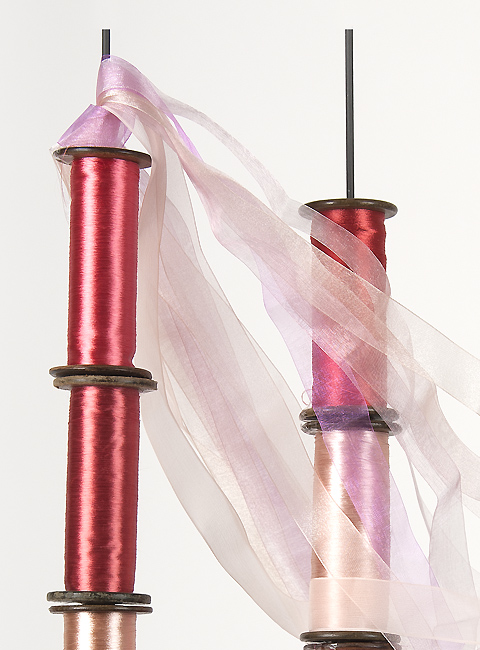 The breeding ground is represented by the colored pigment providing the DNA for the developing matter. Piano strings, standing as reed stems, bending with the wind melody, hold the colored spools of thread, instruments for creation. To the end of the stems, colored ribbons are flying, joyful and dancing witnesses of this melody.