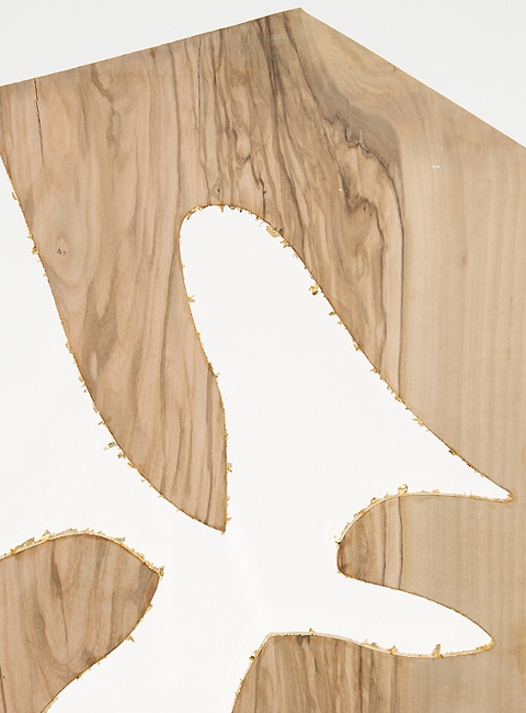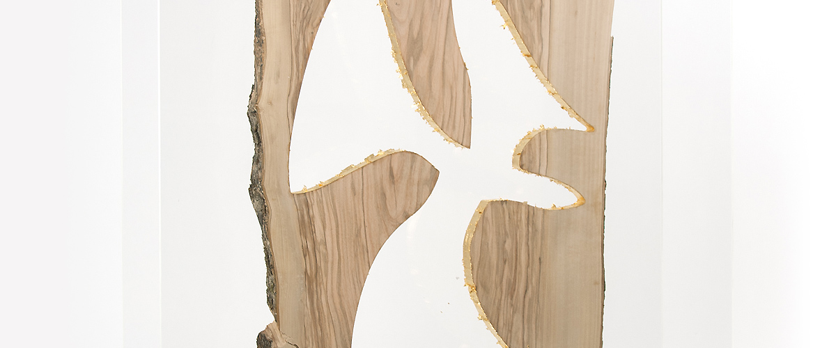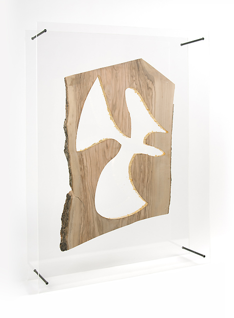 Dans l’œuvre « The Window », la planche d’olivier, comme un pochoir, devient une trouée vers un au-delà sans fond. Une fenêtre vers l’infini.