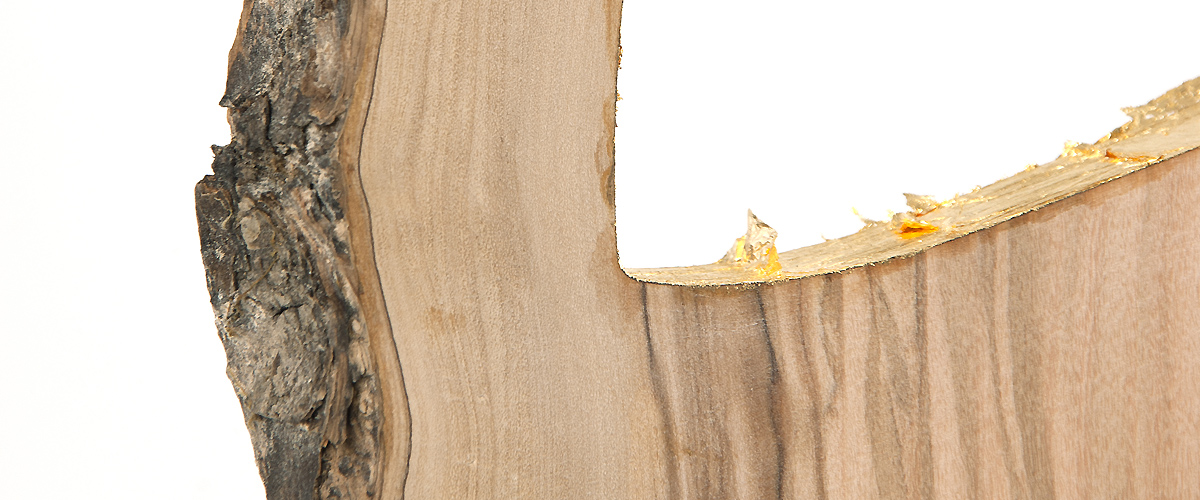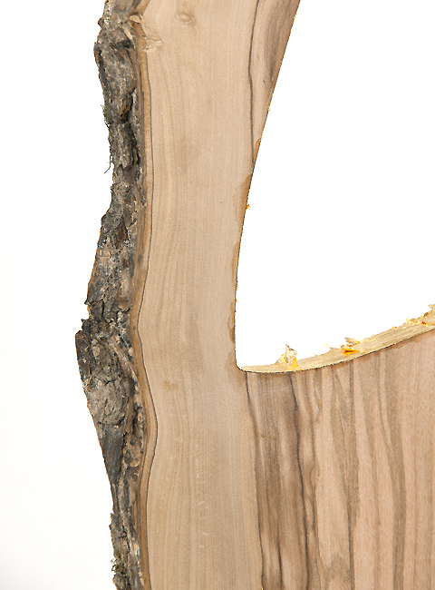 The olive wood, by laser burning, reveals the dove bird hidden inside.