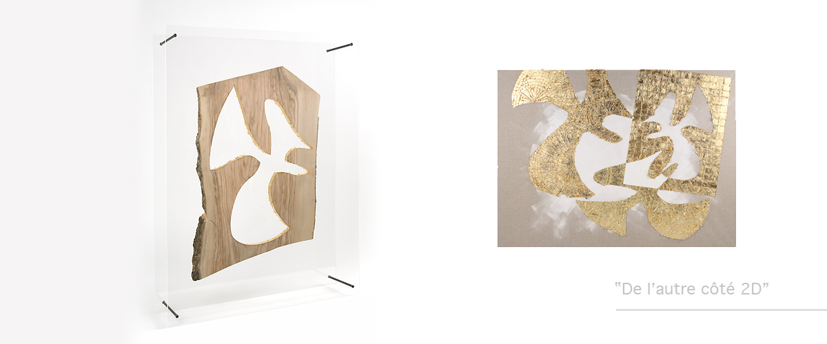 Le bois d’olivier, part la brûlure du laser, exprime l’oiseau-colombe qu’il contient.